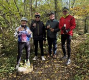 Am 27.11. war es soweit: Pünktlich um 10 Uhr fiel am Radstadion in Gäufelden-Öschelbronn der Startschuss zur Baden-Württembergischen Meisterschaft im Querfeldein-Radfahren der Hobbyklasse. Mit am Start standen Boris und Henning Gelse vom RV Bodelshausen, die bei Temperaturen knapp über dem Gefrierpunkt den anspruchsvollen 2,2km langen Rundkurs in Angriff nahmen. Der Traditionsverein RSV Öschelbronn als Ausrichter hatte einen interessanten Parcours eingerichtet: Er führte über Teilstücke aus Asphalt, Wiesen und einen Waldtrail; zwei kurze, etwas Mut fordernde Steilabfahrten und die obligatorischen künstlichen Hindernisse sorgten für die nötige Abwechslung. Unter den fachkundigen Zuschauern waren auch unsere Vereinsmitglieder Adolf Rouff, Andreas Schmidt und Ralf Leukart - alle auch ehemalige „Wettkampf-Crosser“. Und sie bekamen etwas geboten: Boris Gelse belegte nach fünf Runden den 17. Platz und Henning erkämpfte sich unter der landesweiten Konkurrenz von 27 Fahrern sogar den 7. Platz! Wir gratulieren! Auf dem Foto von links: Klaus Kunath (Spvgg Warmbronn), Boris und Henning Gelse (RV Bodelshausen) und Tobias Breil (RSG Zollernalb).