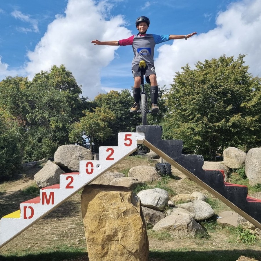 Es war seine erste Teilnahme an einer Meisterschaft im Einrad-Trial und gleich von Erfolg gekrönt. Am 23.08.2025 belohnte er sich bei der DM im Einrad-Trial für sein hartes Training und wurde deutscher Meister in der Juniorenklasse.