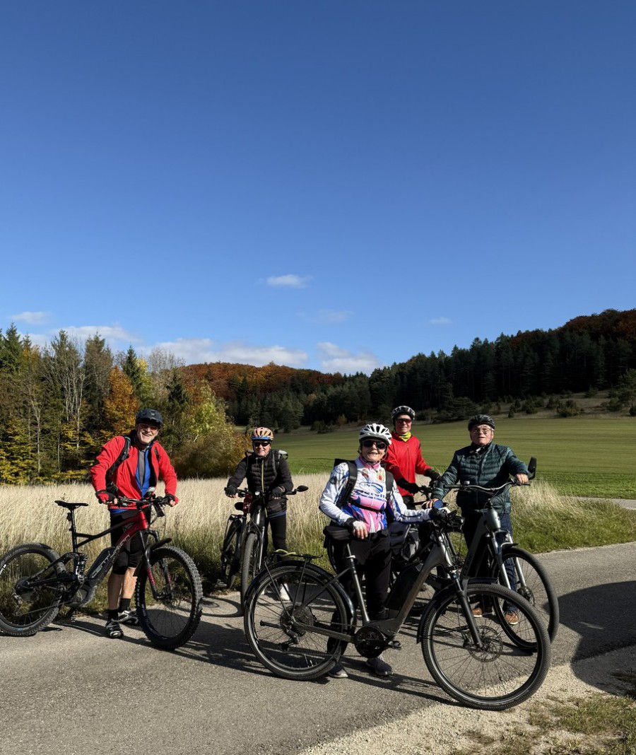 Zum Finale der Cappuccino-Saison hatte es der Goldene Oktober nochmal besonders gut mit uns gemeint. So waren wir am 11.10. unter der Regie von Harry bei bestem Radlerwetter unterwegs nach Tübingen mit Ziel Schwärzlocher Hof und retour über Rottenburg. Eine Woche darauf radelten wir via Killertal durch den bunten Herbstwald auf die Alb über Ringingen nach Burladingen. Auf dem Rückweg entlang der Starzel machten wir Halt am Junginger Wasserfall, wo uns Otti und Peter mit einem (alkoholfreien) Sektempfang und Brezeln überraschten. Nach einem gemütlichen Ausklang im Kastanienhof ging es gleich ans „Pläne schmieden“ für die neue Cappuccino-Saison in 2026. Wir freuen uns schon darauf!