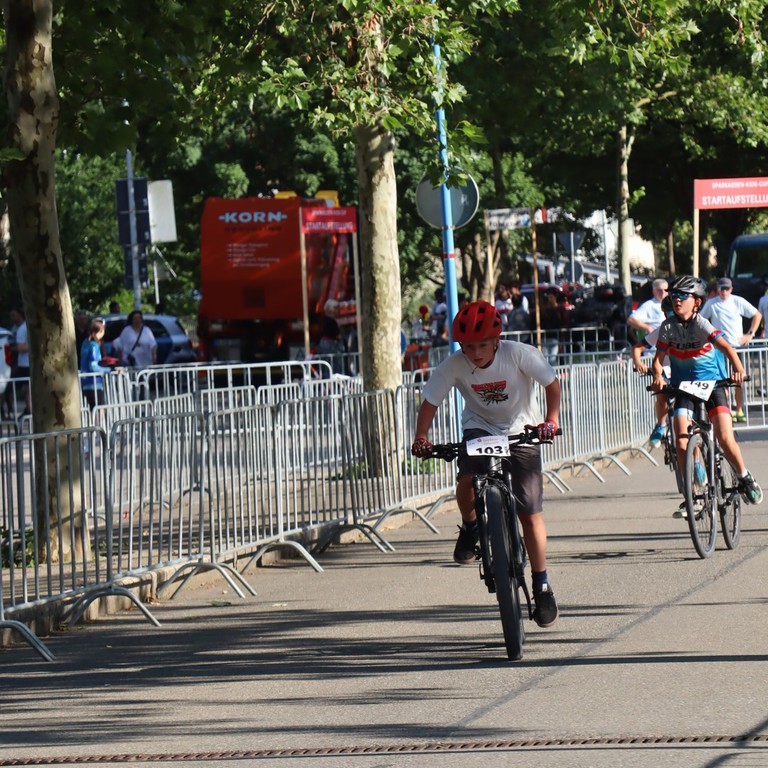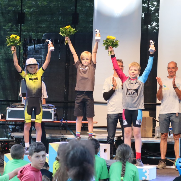 Der Vorabend des Albstadt Bike Marathons gehört traditionell dem Nachwuchs. Auf der Strecke an der Mazmannhalle konnten die kleinsten erste Rennerfahrung sammeln, während es bei den größeren bereits um die Platzierungen ging. Mit 9 Nachwuchsfahrern war der RV hier am Freitagabend beim Citysprint in den Klassen U9 bis U13 vertreten. Erster Fahrer war Milo Adis in der Klasse U9 Jahrgang 2020 und jünger. Er kam auf dem 8. Platz von 23 Startern ins Ziel. Sein Bruder Pius fuhr in der Klasse U9 Jg.2017 ebenfalls auf einen starken 8. Platz von 31 Startern. In der Klasse U11 waren mit Bruno und Theo Staigle sowie Mathis Janecek 3 RV’ler am Start. Diesen Lauf konnte Bruno mit dem Sieg für sich entscheiden, knapp gefolgt von Mathis, der auf einen klasse dritten Platz fuhr. Das sehr gute Ergebnis rundete Theo mit dem sechsten Platz von 21 Startern ab. Im Lauf U13m starteten Xaver Heuberger und Levin Adis mit 18 weiteren Fahrern. Levin kam hier auf dem fünften Platz, Xaver auf dem achten Platz ins Ziel. Zum Abschluss konnten sich noch unsere beiden Mädels Fabienne Eissler und Marie Staigle mit 12 weiteren Mädels messen. Fabienne fuhr hier wie bereits zuvor Bruno einen Start-Ziel-Sieg ein, Marie verpasste mit dem vierten Platz nur knapp eine Podestplatzierung. Somit konnten wir am Ende des Tages alle unsere Fahrer in den Top Ten feiern. Den schönen Abschluss des Tages bildete dann noch die Siegerehrung auf der großen Bühne. Herzlichen Glückwunsch an alle unsere Sportler, wir freuen uns mit euch.
