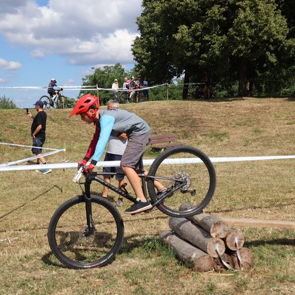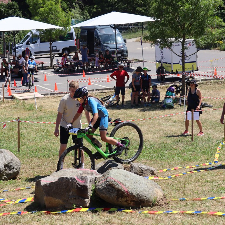 Die Kraichgau Biker luden am 29.06.2025 zum zweiten Lauf des Berg & Bike Cups nach Waibstadt ein. Die Rennen waren für alle eine echte Herausforderung, da das Thermometer nachmittags bis auf 37 Grad kletterte. Für Fabienne und Maximilian eine Chance neue Strecken und Konkurrenten kennenzulernen. Für Fabienne in der Klasse U13w bestand der Wettkampf aus einem Technikteil und dem Rennen. Das Rennen wurde hier im Jagdstart gestartet, das heißt je nach Ergebnis des Technikteils wurden die Fahrer auf die Strecke geschickt. Da der Technikteil nicht ganz Fehlerfrei blieb, musste Fabienne 10 Sekunden hinter der Spitze starten. Den Rückstand konnte sie aber bereits in der ersten Runde aufholen und übernahm dann die Spitze, welche sie bis zum Ende verteidigen konnte. Souverän fuhr sie nach 3,9 km und 120hm als Siegerin über die Ziellinie.