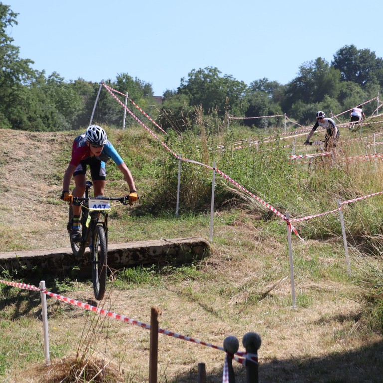 Nach Böbingen an der Rems, mit rund 120 km Anreise dass am weitesten von Bodelshausen entfernte Rennen im Alb Gold Juniors Cup, ging es letzten Samstag für vier unserer Fahrer vom RVB. Wie gewohnt starteten die älteren Jahrgänge als Erste in die Rennen, bevor am Nachmittag unsere jüngeren Biker dran waren. Nachdem unser Maximilian von 8 bis 9 Uhr den Kurs und die eingebauten Vario Hindernisse angeschaut und getestet hat, konnten wir noch den Start der U19 und U17 Fahrer und Fahrerinnen anschauen bevor er sich dann auch auf sein Rennen vorbereitete. Punkt 10.30 Uhr wurde er mit 18 weiteren Fahrern in das Rennen geschickt, dass er nach 5 Runden auf dem neunten Platz beendete. Dann durften unsere U11 und U9 Fahrer ihre Geschicklichkeit auf dem Rad im Technikparcours beweisen, was bei allen echt gut funktionierte. Nach einer Mittagspause ging es dann pünktlich um 14.30 Uhr für Xaver im Lauf der U11m ins Rennen. 2 Runden standen für die U11er auf dem Programm. Trotz der Hitze und einem großen Starterfeld von 42 Fahrern fuhr er einen hervorragenden 13. Platz ins Ziel. Im Anschluss war dann Fabienne dran. Nach einem guten Start und nach der ersten Runde auf Platz 6 liegend mit Anschluss an Platz 5 und 4 fiel ihr in der zweiten Runde in einem Anstieg leider die Kette vom hinteren Zahnkranz und verklemmte sich. Durch die Reparatur gebremst kam sie am Schluss auf dem 9. Platz ins Ziel. Zum Abschluss des Tages durfte auch noch unsere kleinste in Rennen starten. Für Rosemarie ging es auf 2 etwas verkürzte Runden. Angefeuert vom restlichen Team kam sie am Ende mit wunderschönem Lachen im Gesicht auf Platz 10 ins Ziel. Wir Trainer gratulieren herzlich zu den klasse Erfolgen und freuen uns schon auf die nächsten Rennen mit euch.