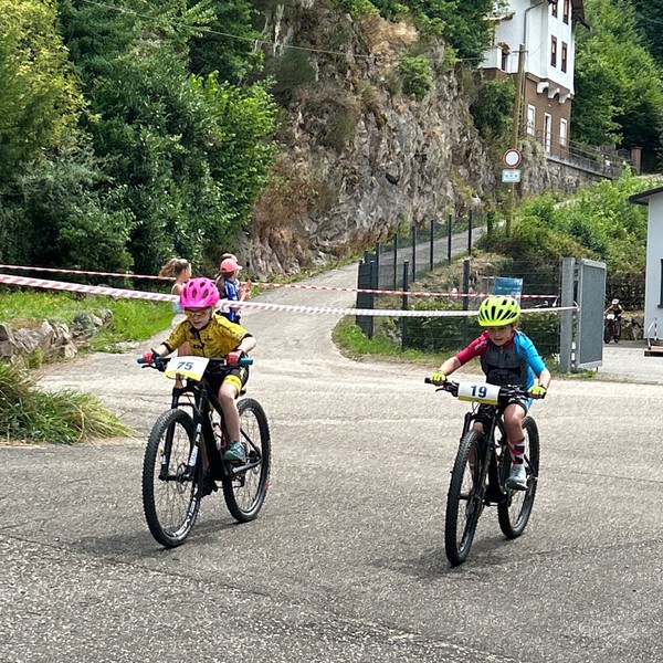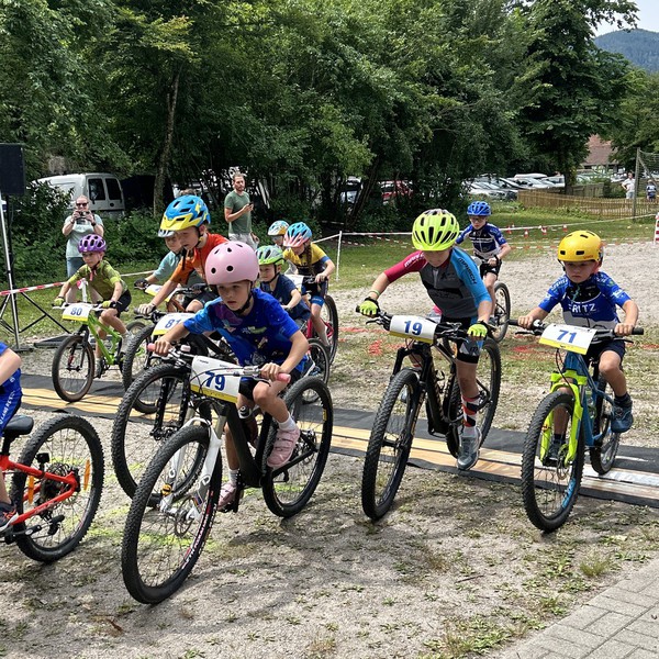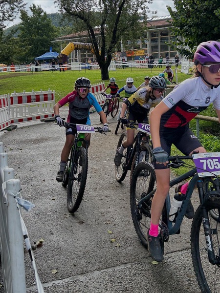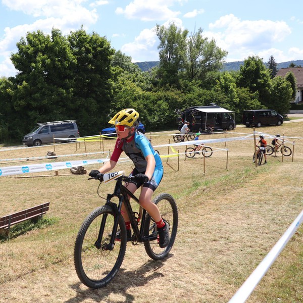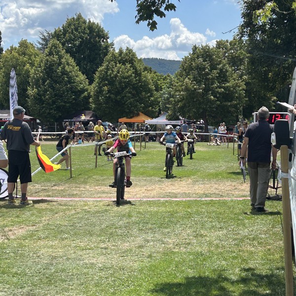 Vom 21.7. bis 23.7. wurde auf der Weltcupstrecke im Albstädter Bullentäle wieder großer MTB-Rennsport gezeigt. Während die Erwachsenen bei den deutschen Meisterschaften im Short Race, auf der olympischen XC-Distanz und in der Disziplin E-MTB um die Meistertitel kämpften, konnte auch der Nachwuchs bei der Nachwuchssichtung und den Läufen im Alb-Gold-Juniors-Cup seine Leistungsfähigkeit beweisen. Und Kraft und Ausdauer waren in Albstadt gefordert. Bei den U15m ging es z.B. über 3 große Runden, insgesamt waren das 9 km und rund 500 hm. Für die U11m waren 3 Runden mit knapp 4,5 km und 160 hm angesagt, bei der U11w 2 Runden mit 3 km und 110 hm. Die U9w mussten 2 Runden à 550 m und 12 hm absolvieren und unser jüngster Fahrer trat 800 m mit 20 hm in die Pedale. Aufgrund der Nachwuchssichtung waren auch die Teilnehmerzahlen in den Gruppen zum Teil deutlich größer als gewohnt und die Gegner schwerer einzuschätzen, da diese aus der gesamten Republik anreisten. Die Ergebnisse im Überblick: