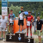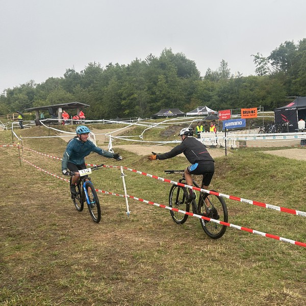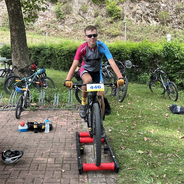 Beim anschließenden MTB-Event gingen Maximilian, Manne, Pavel und ich auf der Kurzdistanz mit 20 km/350hm an den Start. In der Startaufstellung hatte es begonnen zu nieseln, was aber zum Glück schnell wieder aufhörte und wir das Rennen trocken bestreiten konnten. Das Spannende hier ist, dass man nach rund 12 km wieder durch den Start/Zielbereich kommt, bevor man auf die kleinere Schlussrunde geht. Das bietet auch den zahlreichen Zuschauern Unterhaltung. Auch in diesem Rennen konnte Maximilian seine gute Form beweisen und beendete das Rennen auf Platz 5 bei den Junioren U19, da es hier keine extra Wertung für die U17 gab, und dem 14. Platz in der Gesamtwertung. Pavel beendete sein Rennen auf Rang 21 Gesamt und Platz 11 in der AK, ich landete auf Platz 43 Gesamt und Platz 9 in der AK. Manne hat sein Rennen abgebrochen, um einem vor ihm schwer gestürzten Fahrer zu helfen. Hierfür einen großen Respekt, denn das ist leider nicht für alle selbstverständlich.