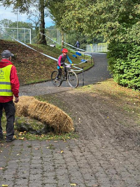 Um 15 Uhr startete dann das Rennen für unseren Maximilian. Für Ihn lief es hier leider nicht so gut, er hat sich beim warmfahren einen Defekt im hinteren Reifen eingefangen. Somit hieß es erst einmal kurz vor dem Start das Bike zu reparieren. Mit dem zweiten Aufruf in die Startaufstellung haben wir das reparierte Hinterrad eingebaut und er konnte in den Startbereich fahren. Beim anschließenden Start konnte er zunächst mit der Spitzengruppe mitfahren, war aber durch die Aufregung vor dem Start kurz unkonzentriert und stürzte in einem Hindernis. Dadurch musste er alleine dem Feld hinterherjagen und schuf den Anschluss leider nicht mehr. Er gab aber nicht auf und beendete sein Rennen auf dem vierten Platz. Für beide war es ein anstrengender aber schöner Renntag und sie sind nächstes Jahr hier bestimmt auch wieder am Start.